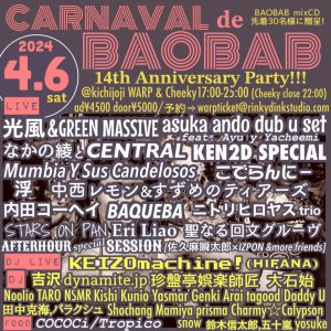 光風&GREEN MASSIVE / なかの綾とCENTRAL / asuka ando dub u set feat.ayu y yacheemi / Mumbia Y Sus Candelosos / KEN2D SPECIAL / 浮 / STARS ON PAN / BAQUEBA / 内田コーヘイ&friends / こでらんに〜 / 中西レモン&すずめのティアーズ / Eri Liao / ニトリヒロヤスtrio / 聖なる回文グルーヴ / AFTERHOUR special SESSION (佐久麻瞬太郎dr×IZPON per & special guests!)