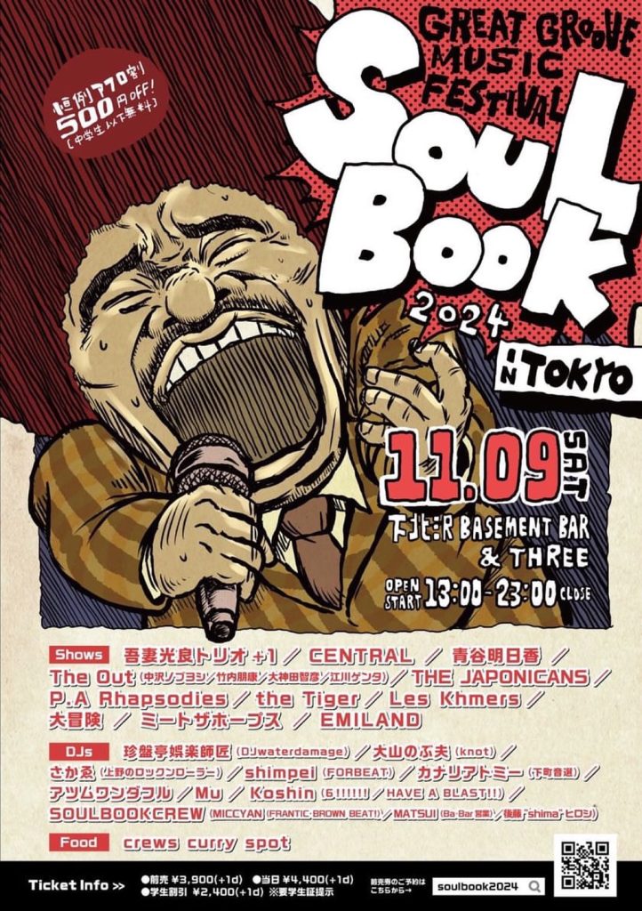 DJs : 珍盤亭娯楽師匠(DJwaterdamage) / 大山のぶ夫(knot) / さかゑ(上野のロックンローラー) / shimpei (FORBEAT) / カナリアトミー(下町音選) / アツムワンダフル / Mu / Koshin(6 !!!!!! / HAVE A BLAST!!) / SOULBOOKCREW